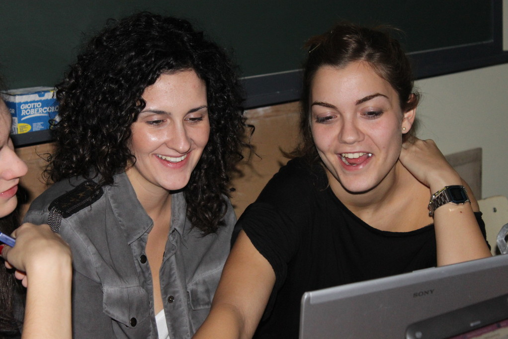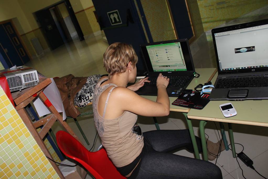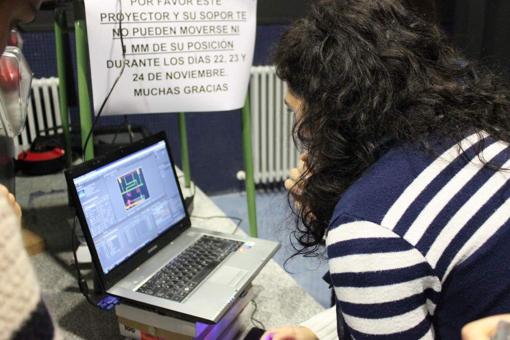 La conductora del Taller de vídeo mapping, Cynthia González felicita a los alumnos por el trabajo realizado.